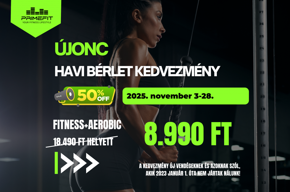 Óriási kedvezmény – most féláron edzhetsz! Itt a pillanat, hogy újra belevágj a mozgásba – mi most extra lendületet adunk hozzá! Több mint 50% kedvezmény! Újonc Aerobic–Fitness havi bérlet most csak 8.990 Ft, 18.490 Ft helyett – november 3–28. között. Új vendégeknek Visszatérőknek, akik legutóbb 2023. január 1. előtt jártak nálunk. Formálódj, töltődj, mozogj – […]